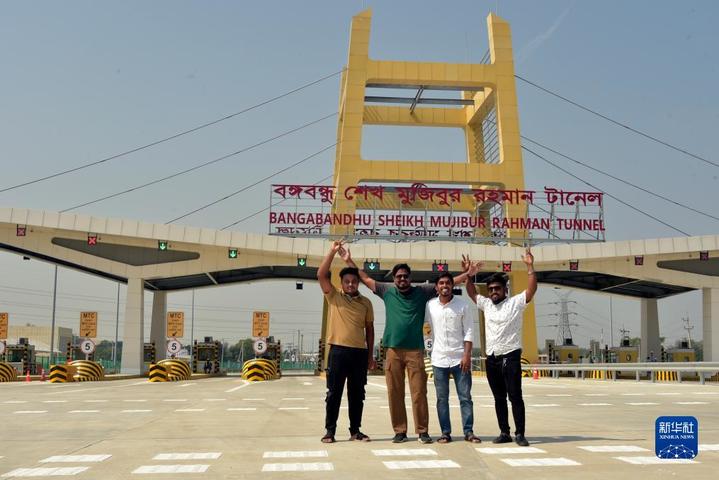 10月29日,人们在孟加拉国吉大港市卡纳普里河底隧道一处收费站前庆祝通车。新华社发