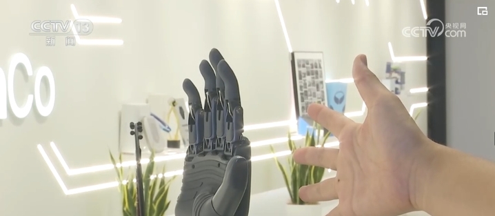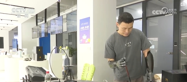 几天前,在杭州亚残运会的开幕式上,游泳运动员徐佳玲通过大脑控制安装在她左臂的智能仿生手点燃了主火炬塔。这里就是这款智能仿生手的研发地,一位工作人员正佩戴着仿生手用毛笔写下“自强不息”四个字。通过构建仿生神经肌肉通路,佩戴者能精准控制每根手指,重建手部运动功能。这是另外一位工作人员正佩戴与杭州亚残运会火炬手同款的另外一类产品进行功能演示。