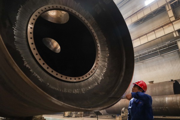 工人在兰州新区兰石集团高端装备产业园的生产车间作业。新华社记者 马希平 摄