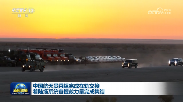目前,地面分队指挥车、搜索车、医监医救车、处置车等上百台车辆已集结到位,等待神舟十六号航天员返回。