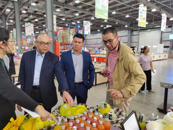 2023年6月7日,洪都拉斯企业家参访团在南京八卦洲跨境电商产业园内参观。新华社记者朱筱摄