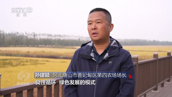河北省唐山市曹妃甸区第四农场场长孙建颖:“比如说稻蟹、稻鱼、稻虾主要注重生态循环、良性循环、绿色发展的模式,像稻虾、稻蟹的生长从插秧开始,蟹苗就撒到稻田里,草籽、微生物都是螃蟹、虾、鱼的天然饵料。”