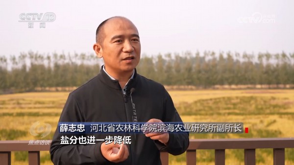 河北省农林科学院滨海农业研究所副所长薛志忠:“一个是品种,一个是土壤改良利用,现在我们用了土壤改良剂以及国家现在大力推广的秸秆还田,使土壤有机质含量得到提升,土壤养分得到提升之后,盐分也进一步降低,耐盐品种加上绿色生产的配套技术,实现绿色、优质的稻米生产,由追求高产逐渐向追求优质转变。”