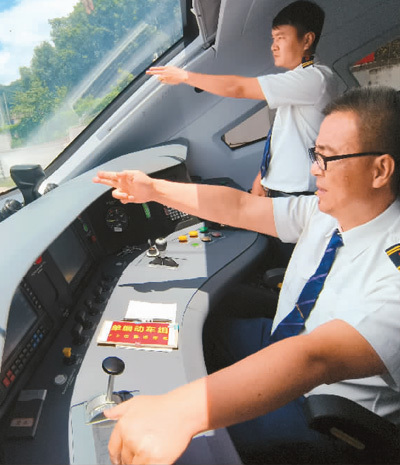 中方司机与老方副司机一同值乘“澜沧号”国际旅客列车。 |
