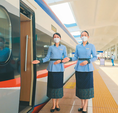 在中老铁路老挝万象站,中老方乘务员按照中国铁路乘务标准,迎接世界各国旅客。 |
