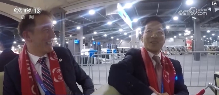 巡馆开始已经接近8时,在观光车上,记者又遇到了刚刚见到的胡凯诚,和他同一个车的是百事公司的全球执行副总裁斯蒂芬·基霍。这是百事公司第一次亮相进博会,原本以为他会对场馆相对陌生,然而到了第一站食品馆,斯蒂芬一下子来了精神。
