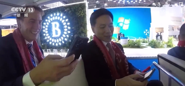 看到自己国家的展品就会主动向对方介绍,看到感兴趣的展品就会一起拍照。聊到最后,两个人甚至互相加了微信,这是他们来到中国之后学习到的新技能。