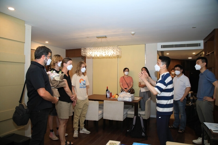 奥克森一家终于抵达上海,受到上海团队热情迎接。