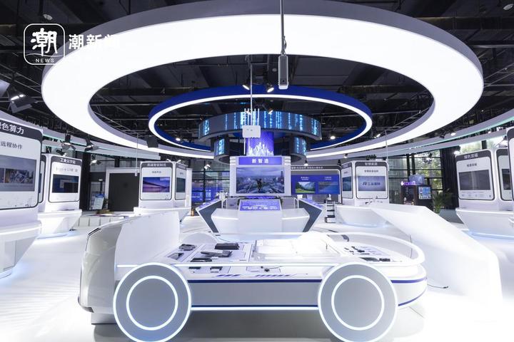 在中兴通讯展位上,南京5G智能制造基地模型吸引了记者注意——从模型上可以看到,产线上自动化作业的机器人、机械臂,正有条不紊地完成多道工序,AGV(工业级移动机器人)小车,搭配先进的配货系统,高效的机器人传送。