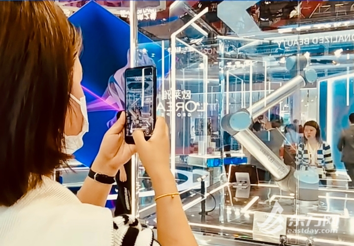 美妆巨头欧莱雅这次为参展专门自设主题:“美”一个你。其在进博会上进行亚洲首发的全球第一款面向手部障碍特殊人士的智能上妆仪正诠释了该主题。这款小仪器内置智能运动控制装置,可以实现360度旋转和180度弯曲,从而将能替代人手辅助上妆。展台现场,机器臂演示吸引了不少人好奇驻足。