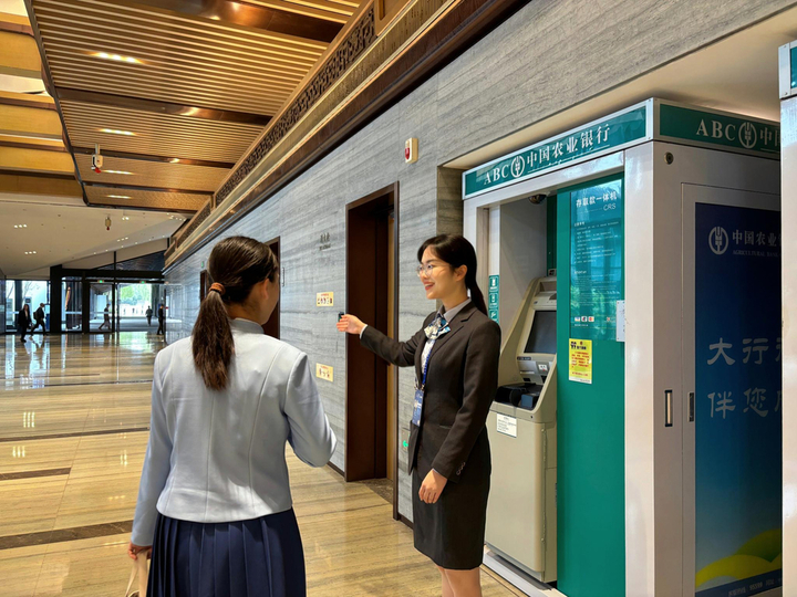 而踏进这里的第一感受,不是高高的柜台,反而是到处能点的屏幕,超级柜台、ATM等自助服务机自然不必说。农行乌镇支行是最早在低柜上也配备超级柜台的网点,“把高低柜合在一起的自助机器,基本一站办通。”