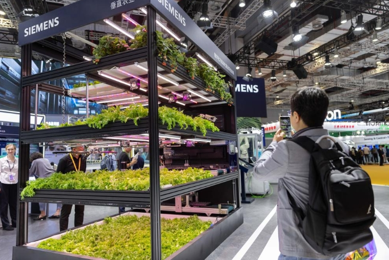 11月9日,观众在西门子展位拍摄智慧植物工厂。新华社记者 王翔 摄