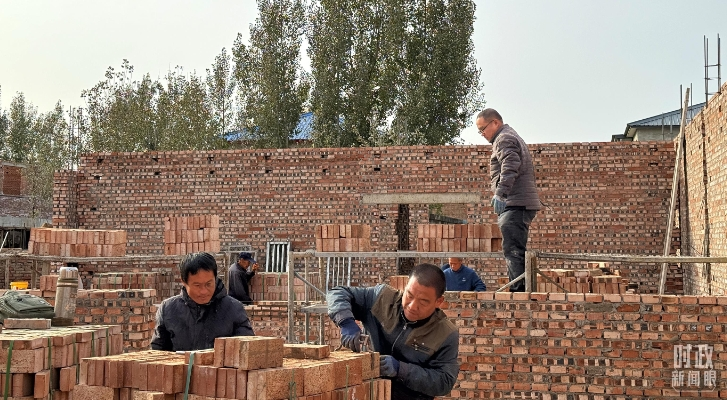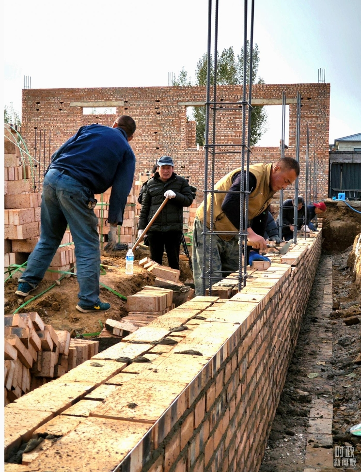 △ 刁窝镇万全庄村村民正在重建房屋。(总台央视记者李辉拍摄)