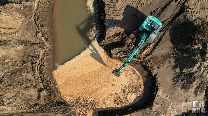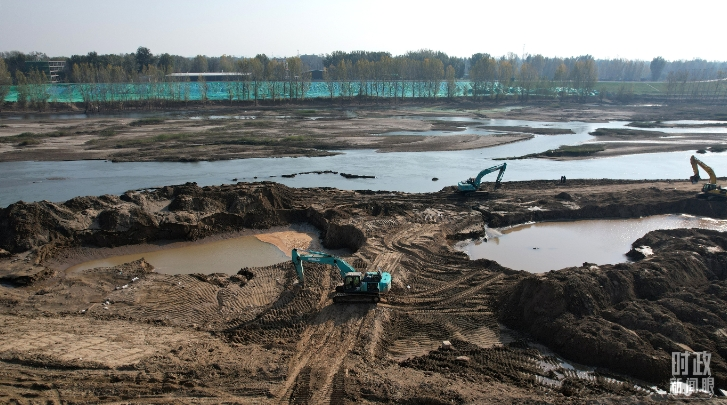 △ 白沟河治理工程(涿州段)施工现场。(总台国广记者李晋拍摄)