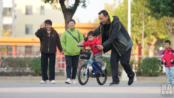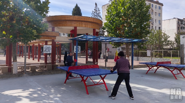 △ 涿州永济秀园小区里的居民正在户外打乒乓球。(总台央视记者王萌萌拍摄)
