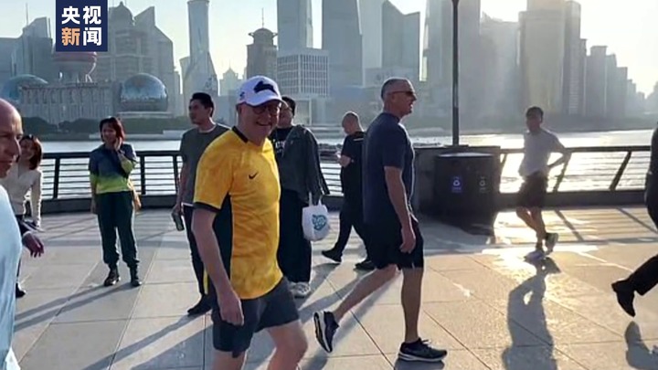 11月4日抵达访华第一站上海后,阿尔巴尼斯当晚就跑去参观上海夜景,第二天一早又在闹市区晨跑,和行人愉快地打招呼聊天。