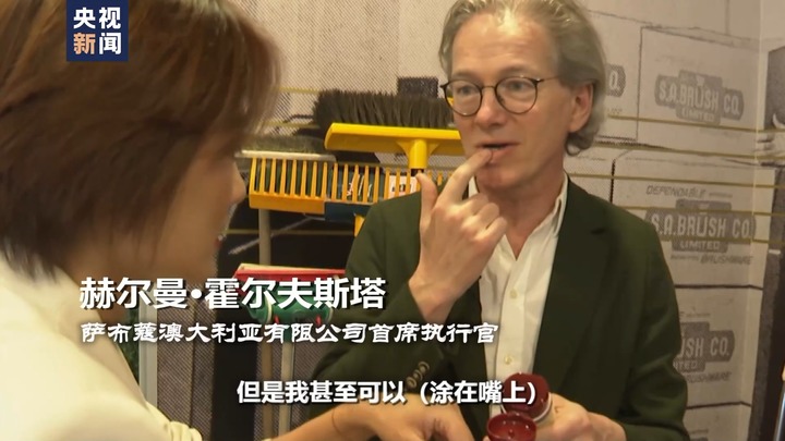 萨布蔻澳大利亚有限公司首席执行官 赫尔曼·霍尔夫斯塔:这个是用在鞋上的,但是我甚至可以涂在嘴上。这个会渗透进皮革。