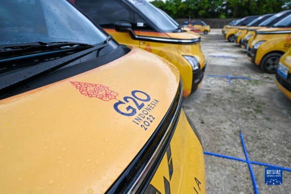 这是2022年11月12日在印度尼西亚巴厘岛二十国集团(G20)领导人第十七次峰会主会场拍摄的五菱新能源车。新华社记者 徐钦 摄