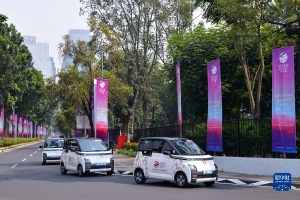 这是9月6日在印度尼西亚雅加达第43届东盟峰会会场外拍摄的五菱新能源车Air ev。新华社记者 徐钦 摄