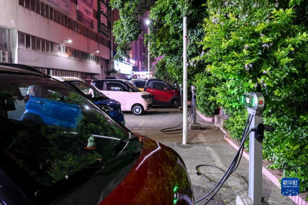 这是在广西柳州市街头拍摄的一处新能源汽车专用停车区(10月16日摄)。新华社记者 曹祎铭 摄