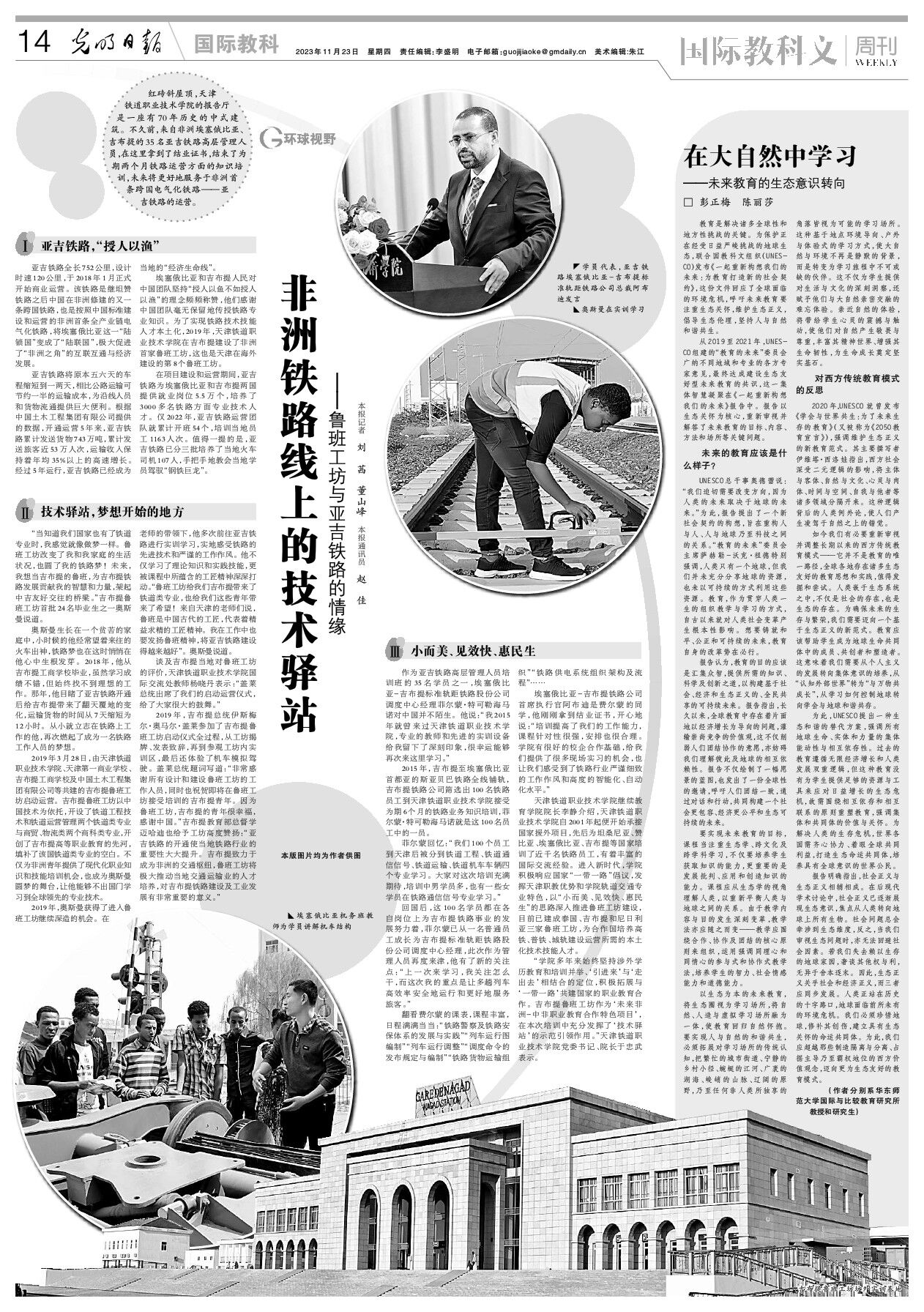 红砖斜屋顶,天津铁道职业技术学院的报告厅是一座有70年历史的中式建筑。不久前,来自非洲埃塞俄比亚、吉布提的35名亚吉铁路高层管理人员,在这里拿到了结业证书,结束了为期两个月铁路运营方面的知识培训,未来将更好地服务于非洲首条跨国电气化铁路——亚吉铁路的运营。