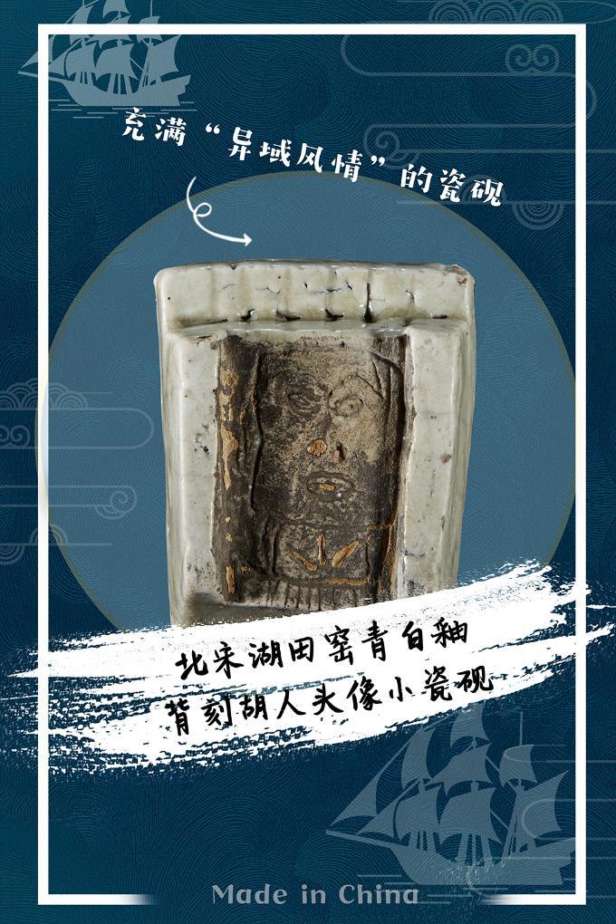 北宋湖田窑青白釉背刻胡人头像小瓷砚