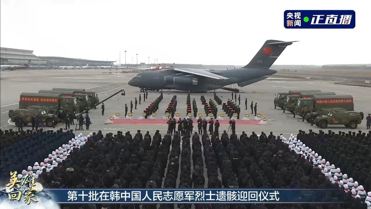 记者从退役军人事务部了解到,今天(11月23日)上午,第十批25位在韩中国人民志愿军烈士遗骸及遗物由空军专机护送从韩国接回辽宁沈阳。
