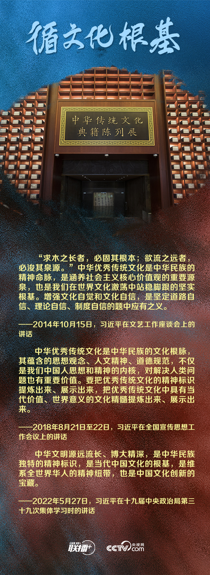 循文化的根基才能辨识当今的中国。只有全面深入了解中华文明的历史,才能更有效地推动中华优秀传统文化创造性转化、创新性发展,更有力地推进中国特色社会主义文化建设,建设中华民族现代文明。