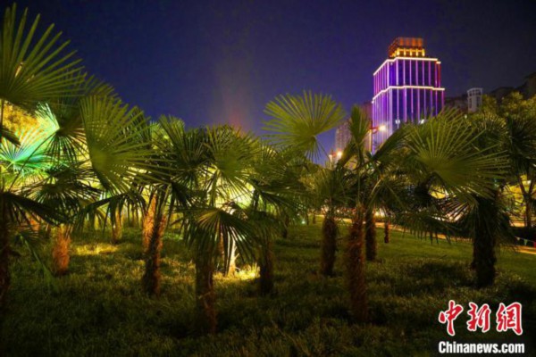 临汾市区路边的棕榈树。 临汾市城市管理局供图