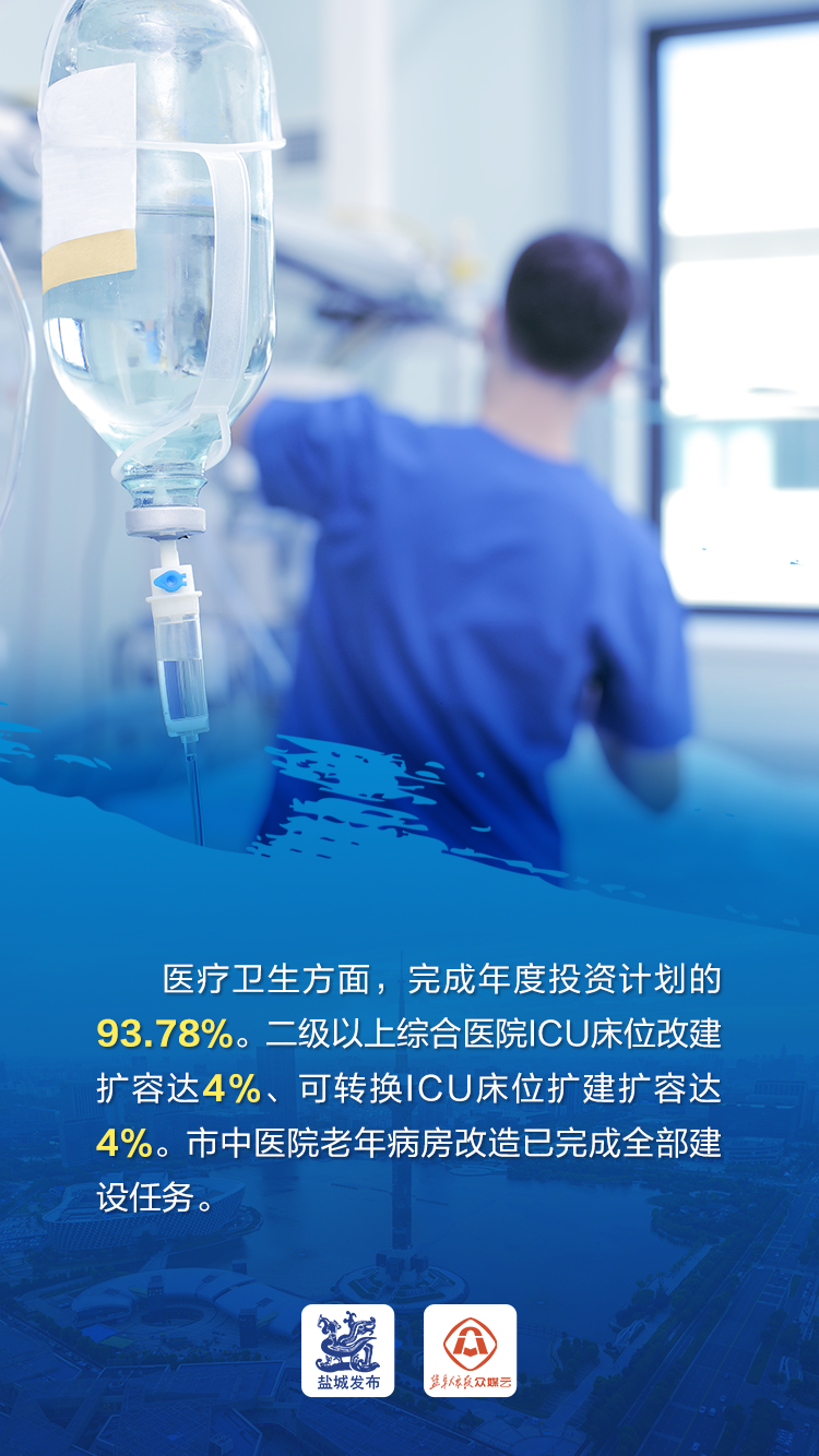 医疗卫生方面,完成年度投资计划的93.78%。经过努力,全市减少外转住院手术18510例,二级以上综合医院ICU床位改建扩容达4%、可转换ICU床位扩建扩容达4%。市中医院老年病房改造已完成全部建设任务。