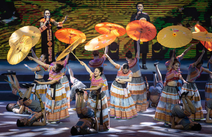 2023年1月18日,以“同心筑厚谊 携手共发展”为主题的2023年中越跨国春节联欢晚会在中国云南省红河哈尼族彝族自治州河口瑶族自治县举行,越南老街省民族艺术歌舞团的演员在晚会上表演歌舞《漂浮在云端的节日》。