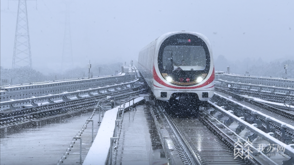 12月18日,在江阴高铁站,交通动脉上的钢铁巨龙从风雪中穿行而过,带着行色匆匆的人们赶赴与冬日的浪漫约会。
