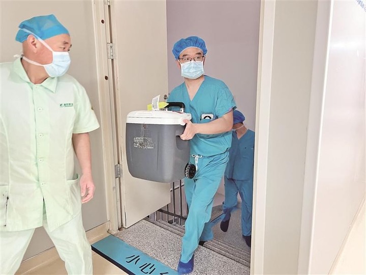 一场和生命的赛跑开始了。12月18日6时,器官获取手术正式开始,6时30分,供肺成功取出。随后,供肺经无菌袋包裹后装入了专用的器官转运箱。器官离开捐献者身体,到移植入受者身体这段时间,在医学上叫做“冷缺血”时间。“肺脏的‘冷缺血’时间一般为8—12小时,越快植入对于受者术后的康复效果越好。”负责转运的工作人员说,经过各方努力搭建绿色通道,转运效率不断提高,从机场到高铁站原本要花1个小时的流程,已经压缩至不到10分钟。18日上午11时,转换多种交通工具后,伴随着工作人员的一路小跑,供肺终于到达无锡市人民医院手术室。供肺从外省转运到无锡,全程耗时不到4个小时。