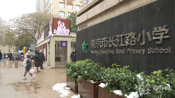 早上8点,记者在南京市长江路小学门口看到,学生正在陆续进校。校方介绍,考虑到天气对出行造成的不利影响,将学生到校时间由平时的8点延后至8点20分。