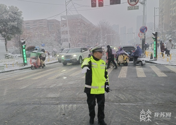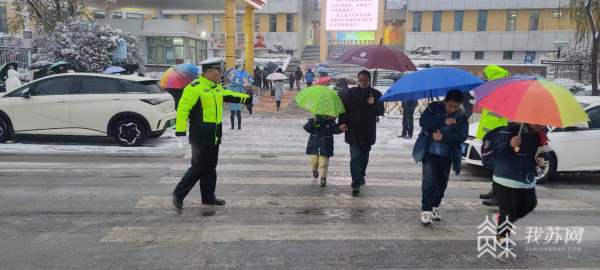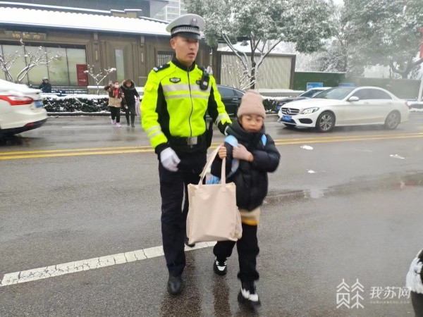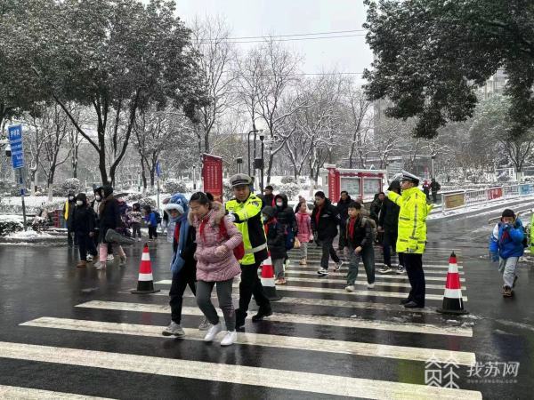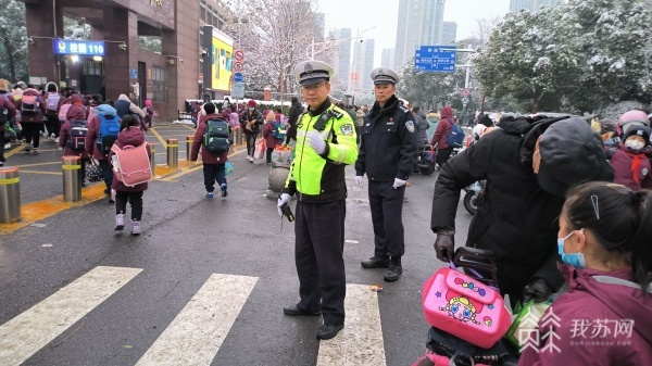 12月19日清晨,大雪过后,南京江北新区部分路面结冰,车辆容易打滑,给广大师生和家长出行带来极大的安全隐患。南京市公安局江北新区分局交警支队高度重视,提前组织部署,因校施策,各大队组织“护学岗”警力提前到岗,加大对校园周围路段的指挥疏导及巡逻管控力度,引导接送学生的私家车辆有序停放,为雪天师生出行,铺设一条安全防护线。