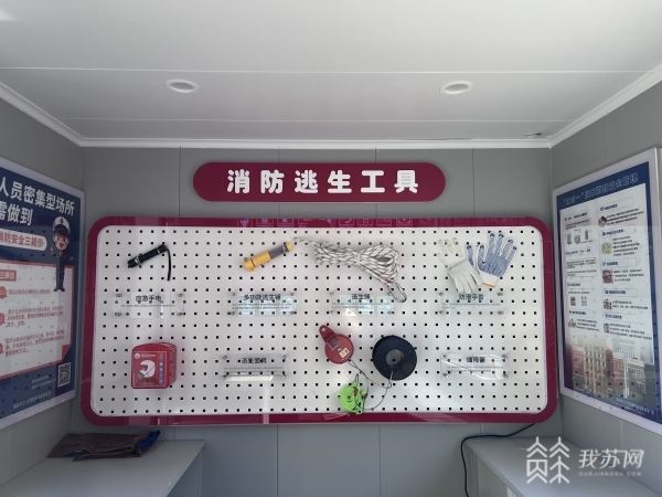 江宁区消防救援大队消防宣传员陈建功说:“我们消防宣传小屋主要是三大类展示,一个是消防安全标识,然后是灭火器材,再就是逃生疏散的一些装备设备。一个是防烟呼吸面罩,还有高空反降绳,逃生绳、应急手电之类的东西,市民可以在这里近距离接触、学习这些器材。”