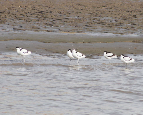 昨天,从瓜洲渔政码头出发,执法船刚到江口,记者就看到江滩上有一群反嘴鹬和矶鹬。
