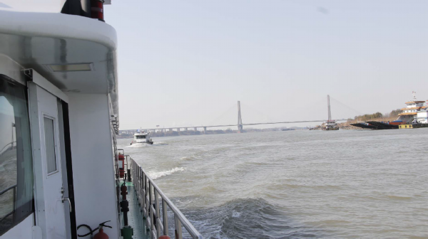 “32621,我们已过十二圩,即将到达润扬大桥,并向瓜洲泵站方向开进,沿途一切正常。”