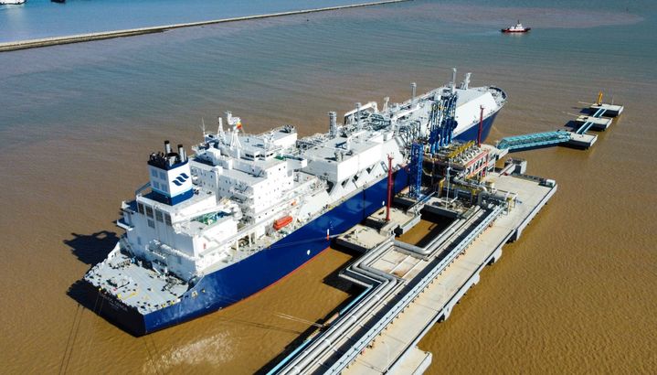 中国海油盐城“绿能港”一期工程整体建设4个22万立方米LNG储罐和6个27万立方米LNG储罐、1座可停泊8万至26.6万立方米LNG船专用码头及配套设施,全部投产后年处理能力可达600万吨,对于优化能源结构、保护生态环境、保障国家能源安全和加快华东地区绿色低碳转型具有重要意义。