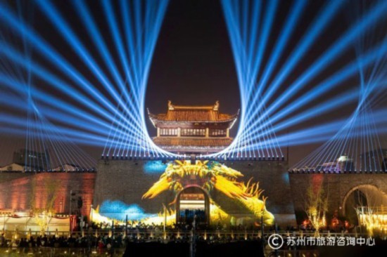 最近,姑苏首个古城墙跨年灯光秀,相门城墙灯光秀活动闪亮登场!
