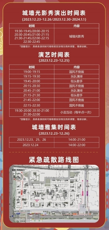 除了精彩的灯光秀之外,匠相风华·潮起城墙主题雅集,以及街头歌手和乐队表演,国风不倒翁和小丑互动体验等沉浸式夜游演艺也将纷纷展开,共同营造热闹的跨年氛围。