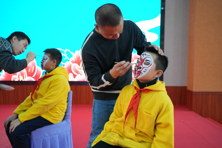 活动现场,主持人许杨老师为南京一中实验学校的学生们介绍生旦净丑戏曲人物知识,讲解戏曲服装、戏曲行当等内容,进行勾脸互动。省戏剧学校小演员们示范戏曲动作、基本手势和基础唱腔,表演了京歌《咏梅》、昆曲《游园》、锡剧《看长江》、京剧《扈家庄》、锡剧《双推磨》,以及身段组合、武功表演等节目,赢得了现场阵阵热烈的掌声。