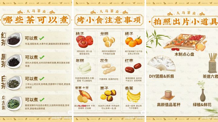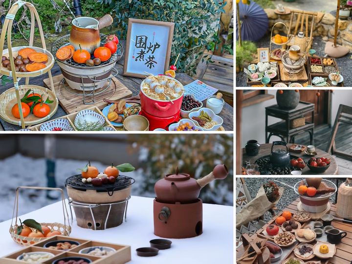 围炉煮茶,是现代年轻人将传统文化与现代生活深度融合,进而带来新的消费热潮和生活方式。在这个冬日的周末,选择可煮的红茶、黑茶、乌龙茶、白茶,安全系数高的电烤炉,当季的柿子、橘子、枣子、栗子等小食,出片的国风点心盘、品茗杯等小道具,约上三五好友,一起感受这人间烟火与岁月清欢。