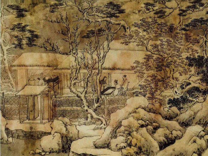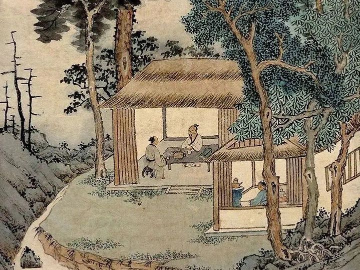 明人讲究品茶时的氛围感,他们会精心建构自己的茶寮,或独烹独啜,或邀友烹啜。文徵明曾在《品茶图》中,展示自己与友人在茶舍品茗清谈,环境是林茂松清、堂舍轩敞、几榻明净。