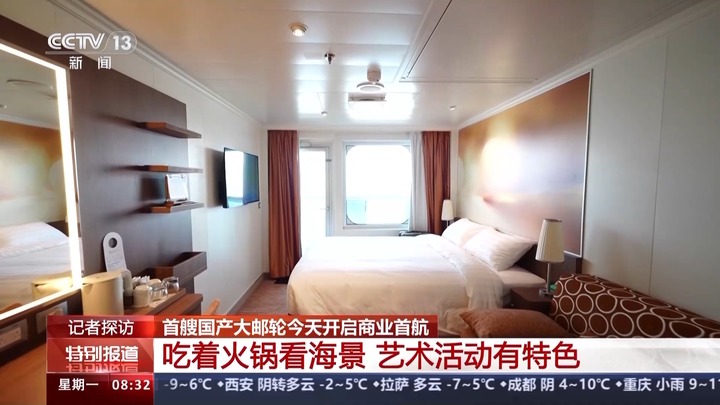 总台央视记者 吴天白:船上工作人员告诉我说,一般的邮轮是不配备火锅餐厅的,因为船在海上航行时会产生晃动,火锅汤汁很容易溅潵出来。而我们国产邮轮不仅重心重量设计控制得好,船两侧还有一对减摇鳍,可以减少88%左右的横摇,让游客们可以放心地围炉畅谈、大快朵颐,而这样的小细节背后也体现着我国船舶建造技术的硬核实力!