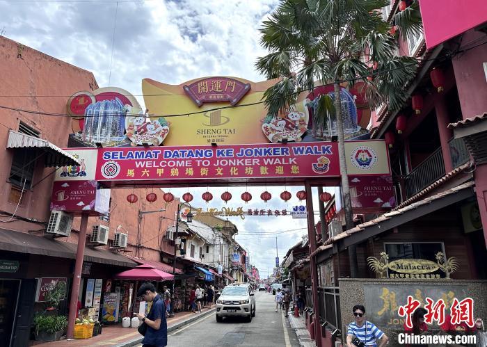 2023年6月拍摄的马来西亚马六甲鸡场街入口。中新社记者 陈悦 摄