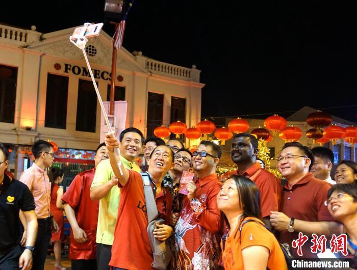 2019年2月5日凌晨,马六甲鸡场街上,当地各族民众一起迎接农历新年。中新社记者 陈悦 摄