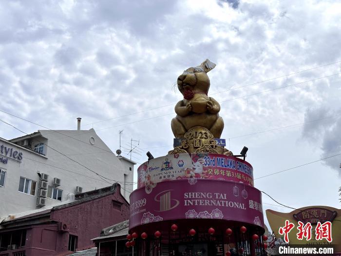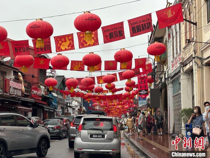 每逢中国农历新年,马六甲鸡场街都布置得极具年节喜庆气氛。图片摄于2023年1月24日。中新社记者 陈悦 摄