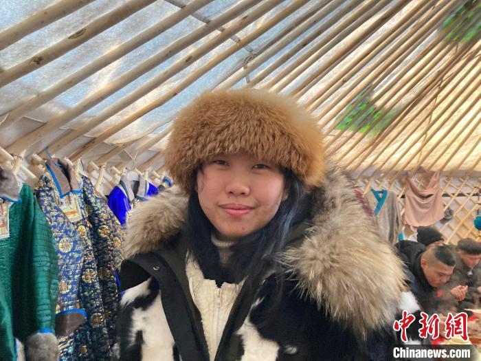 图为台湾交换生李育宁体验蒙古族服饰。(受访者供图)