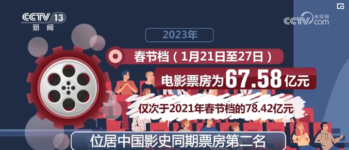2023年春节档(1月21日至27日)电影票房为67.58亿元,仅次于2021年春节档的78.42亿元,位居中国影史同期票房第二名。端午档(6月22日至6月24日)电影票房为9.09亿元,取得了影史端午档票房第二的成绩。暑期档(6月1日至8月31日)票房为206.19亿元,创中国影史暑期档票房新高。